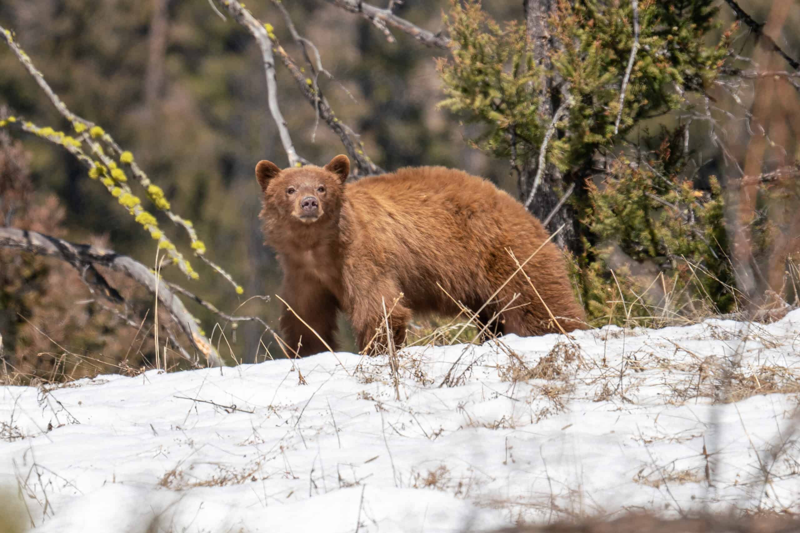 Cinnamon colored black bear foraging in the field across from Blacktail Plateau. April 31, 2023, Yellowstone National Park. Please Subscribe