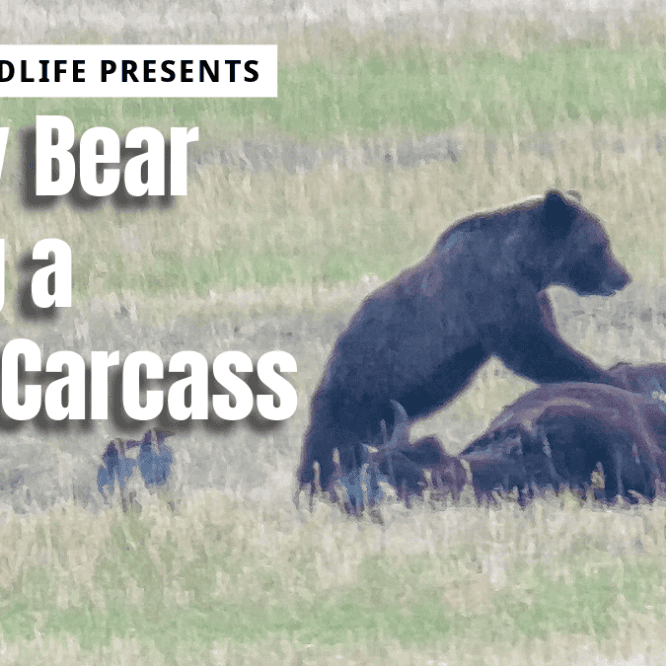Grizzly Bear Eating a Bison Carcass in Lamar Valley, Yellowstone National Park August 2023