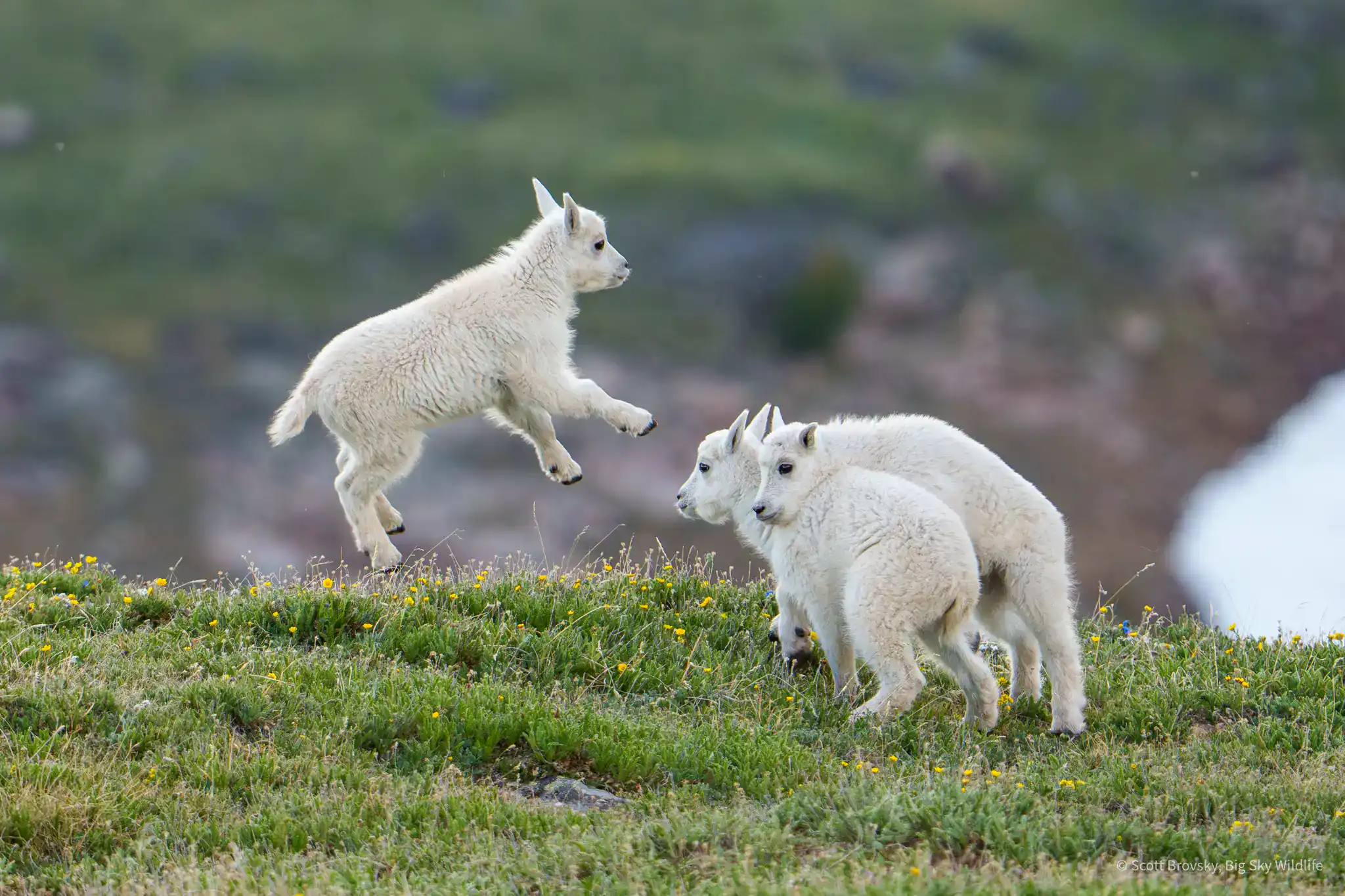 Baby Mountain Goats at Play Posted on June 30, 2025August 11, 2025 Baby Mountain Goats playing and jumping in the Beartooth Mountains. June 2025.